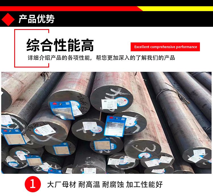 材质:20crmo 执行标准:国标 加工工艺:热轧 用途:广 品牌:湘钢 凌钢 型号:齐全 20CrMo是一种低合金结构钢,以其较高的强度和硬度而闻名,广泛应用于制造高强度、高硬度和耐磨的零件,如轴承、齿轮、传动轴、连接杆等机械零件,以及承受高载荷和冲击负荷的工程结构,如汽车、船舶、桥梁、建筑等领域。